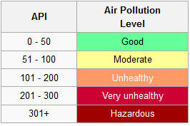 The air pollution index (api) is a simple and generalized way to describe the air quality, which is used in malaysia. The malaysia air pollution index (api) app shows the latest air quality index readings in malaysia, singapore and indonesia. The air pollutants included in malaysia's api are ozone (o3), carbon monoxide (co), nitrogen dioxide (no2), sulphur dioxide (so2), particulate matter with a . Thailand air quality index (aqi) · malaysia air pollution index (api) · singapore pollutant . Track air pollution now to help plan your day and make healthier .
